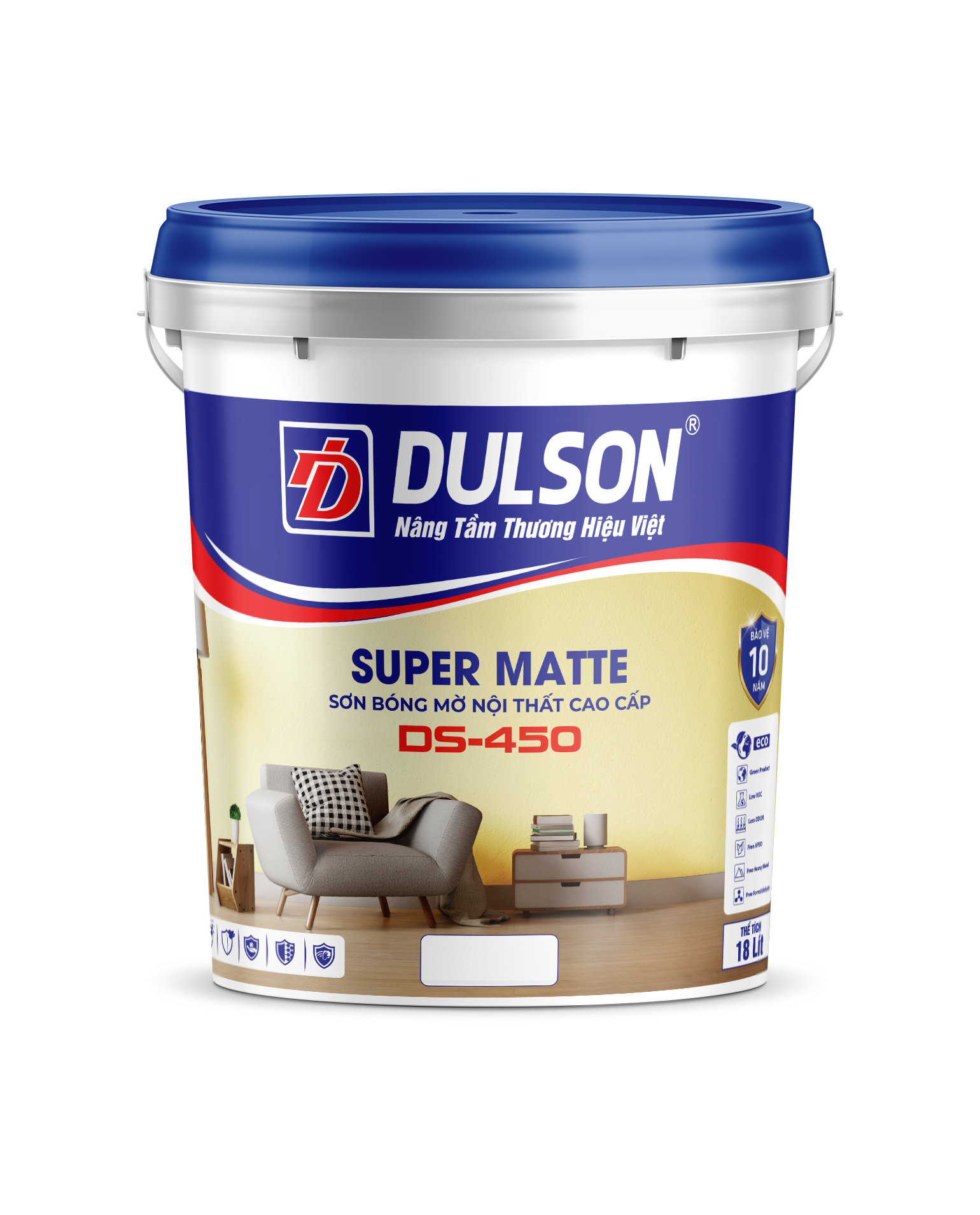 Sơn bóng mờ nội thất cao cấp DS450 là loại sơn nước Acrylic cho màng sơn bóng mờ sang trọng, được sử dụng trong nhà, phù hợp với khí hậu nhiệt đới gió mùa, bề mặt bóng mờ chống nấm mốc hiệu quả, lau chùi hiệu quả cao, chống thấm nước tốt, dễ sử dụng đạt hiệu quả cao cho việc trang trí nội thất bề mặt hoàn thiện sang trọng, thân thiện với môi trường.