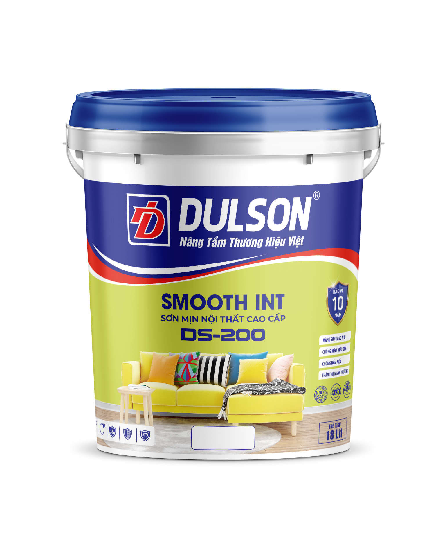 DS200 là loại sơn acrylic phủ trong nhà đã hoàn toàn nhiệt đới hóa rất phù hợp với khí hậu Việt Nam. Có thể lăn lên mọi bề mặt của tường xây dựng, có độ phủ cao (15m2/lít) màu sắc phong phú, chất lượng ổn định, dễ thi công, khô nhanh, bề mặt mịn màng, chống nấm mốc tốt.