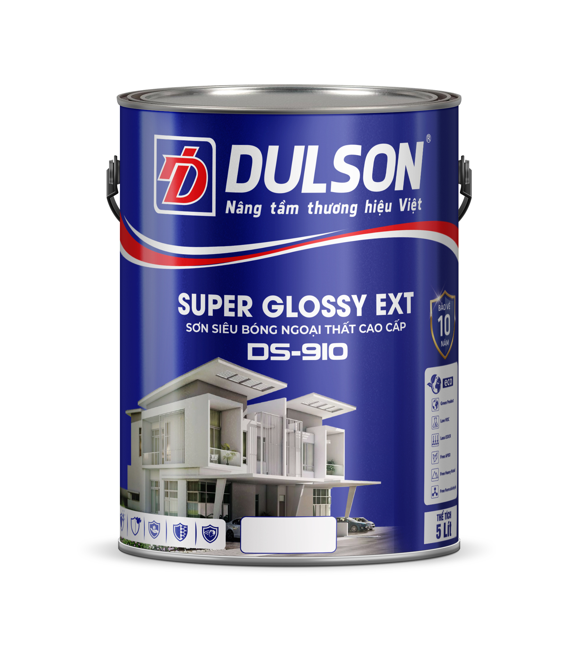 DS910 là loại sơn 100% nhựa acrylic biến tính màng sơn có độ bóng cao, đẹp lộng lẫy, mang đến cho ngôi nhà bạn sự sang trọng, màng sơn bings dưới ánh nắng còn có khả năng tự hủy bụi bám nên sau mỗi trận mưa rào bề mặt lại mới. DS910 có độ phủ lớn (12 – 15 m2/lít) màu sắc phong phú, bề mặt bóng mịn, phù hợp với mọi kiến trúc xây dựng, dễ thi công, chống nấm mốc, chống thấm tốt.