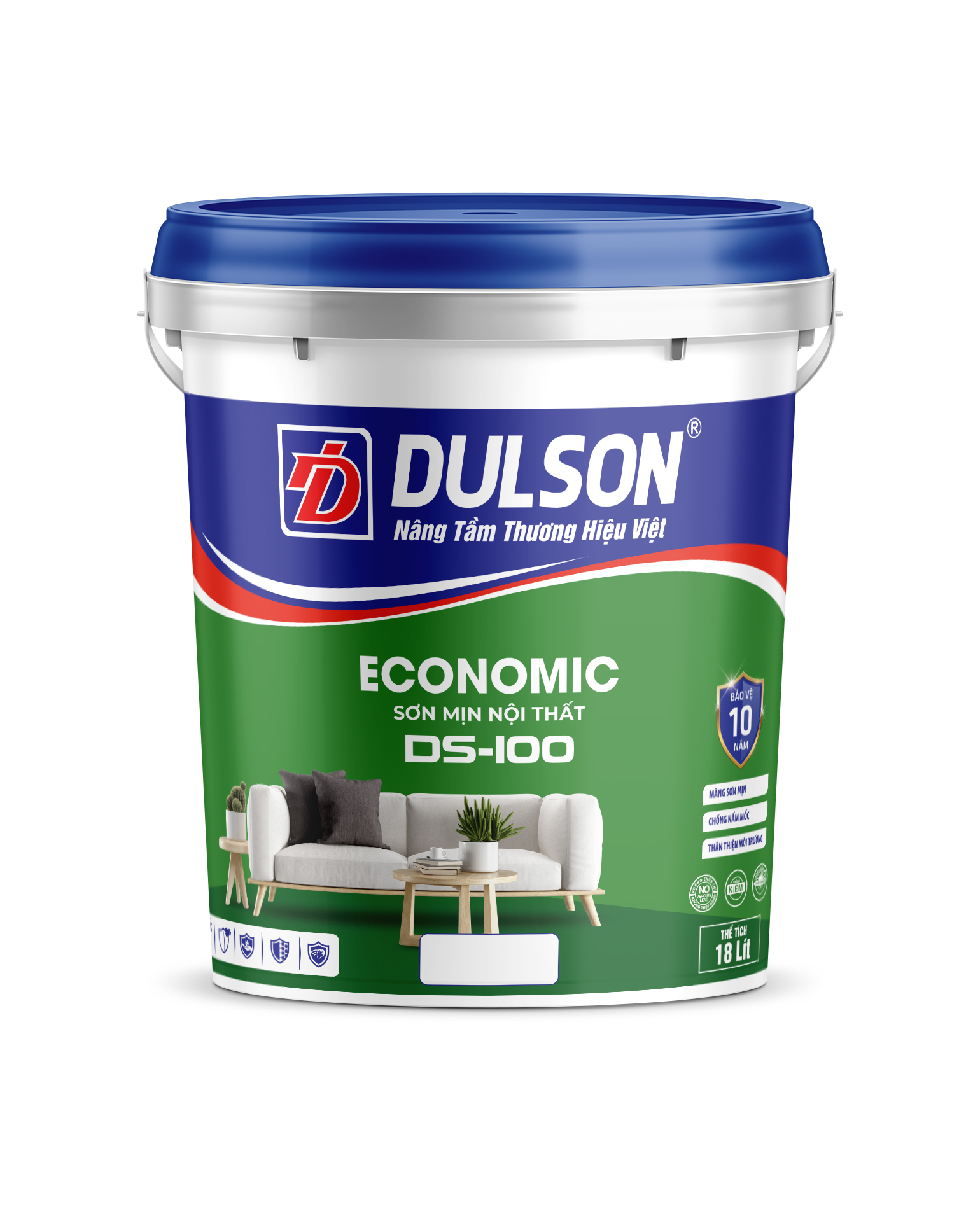 DS100 là loại sơn acrylic phủ trong nhà đã hoàn toàn nhiệt đới hóa rất phù hợp với khí hậu Việt Nam. Có thể lăn lên mọi bề mặt của tường xây dựng, có độ phủ cao (100 ÷ 120m2/thùng) dễ thi công, màu sắc phong phú, chất lượng ổn định