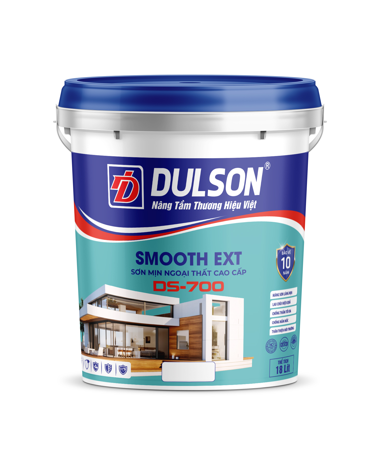 DS 700 là loại sơn 100% nhựa acrylic dùng để sơn phủ ngoài trời có chất lượng cao, đã hoàn toàn nhiệt đới hóa rất phù hợp với khí hậu Việt Nam. Dễ thi công, khô nhanh, bề mặt sơn mịn màng, bền, đẹp, có màu sắc đa dạng, chất lượng ổn định luôn phù hợp với mọi kiến trúc xây dựng. Có độ phủ cao (12 – 14 m2/lít).
